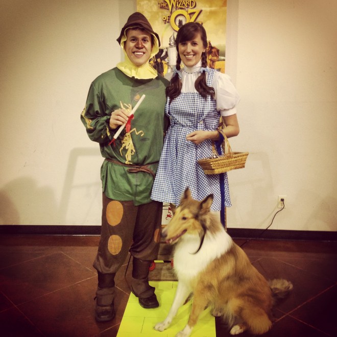 On Saturday night, Zach and I dressed up like the Scarecrow and Dorothy just for fun. I almost found a Bible verse about home to pin-up over our “Trunk or Treat” game, but the making of the yellow brick road ate up our time and attention. It was for the sole pleasure of the children. Our game was humble. We dumped out a barrel of monkeys, let them dangle on emerald ribbon, and gave the kids a Nerf gun. It’s harder to knock down plastic monkeys with a foam dart than you’d think.