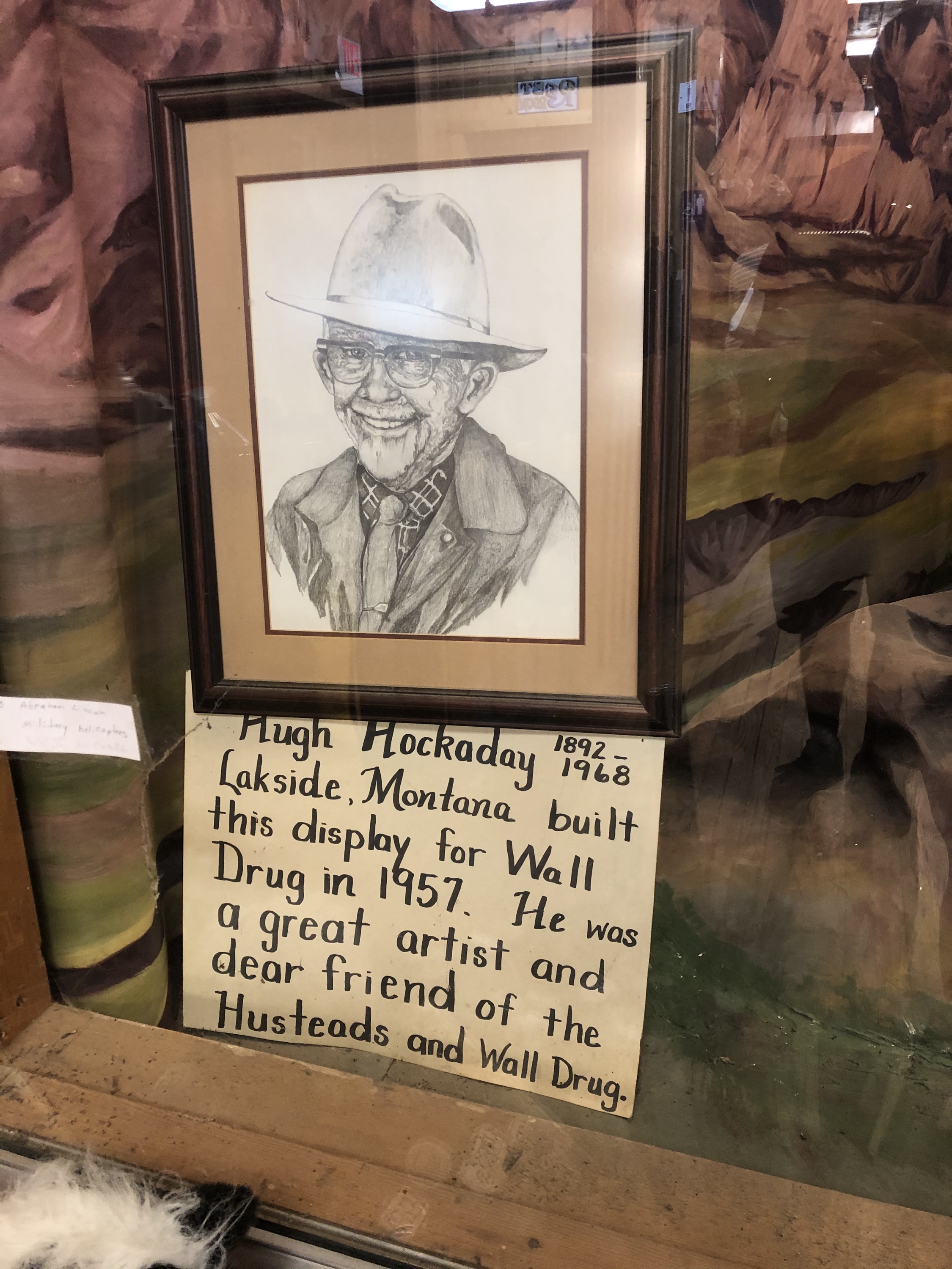 I parked the UHaul alongside RVs and trailer-towing trucks and we masked up for Wall Drug. Decades later, Zelzar still tells fortunes by the restrooms, a room crammed with cowboy boots still smells of leather, and T-Rex still moves mechanically near the six-foot rabbit where people pose for photographs. I noticed for the first time the mechanical cowboy troupe was the work of Mr. Hockaday himself.