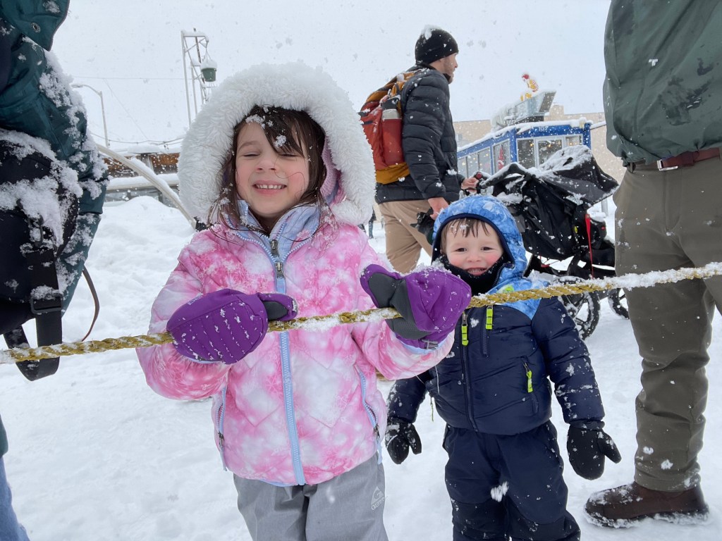 We ate breakfast, pulled on snow pants and stocking caps, and drove to downtown Anchorage to catch the Fiftieth Ceremonial Start of the Iditarod.